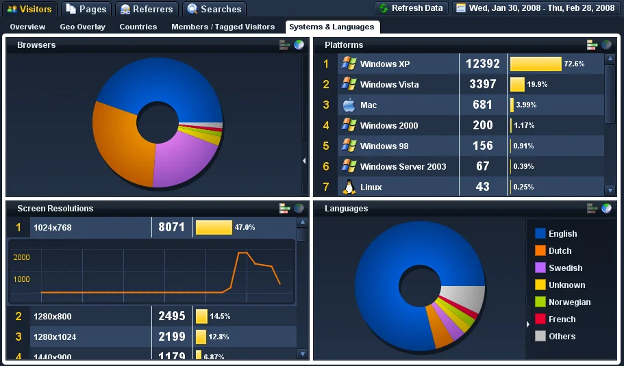این سایت یکی از قدرتمندترین سایت ها در زمینه ابزارهای آنالیزی وبسایت بشمار می رود. این سایت برای افرادی طراحی شده است که تمایل دارند عملکرد بازدیدکنندگان را با جزئیات کامل بررسی نمایند. از دیگر ویژگی های این سایت می توان به رابط کاربری ساده ، ارائه گزارشات کامل ، بررسی میزان ترافیک و منابع ورودی سایت ، بررسی رنک و رتبه سایت ، بررسی وضعیت رقبا ، فعالیت های شبکه های اجتماعی و ورودی های بک لینک و ورودی های گوگل ادوردز و … اشاره کرد.