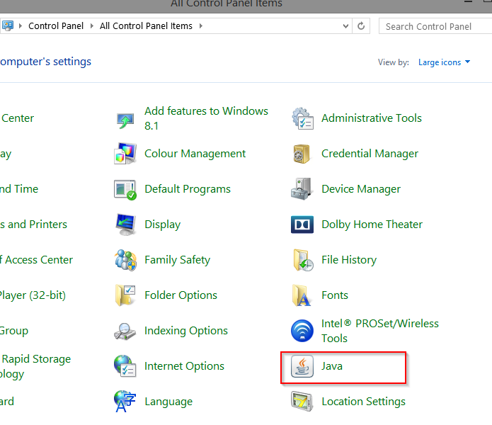 - در سیستم خود وارد Control Panel شده سپس گزینه ی JAVA را انتخاب نمایید.