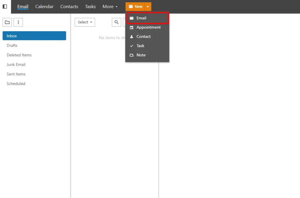 برای ارسال ایمیل از منو سمت چپ استفاده می کنیم. همانطور که در شکل زیر مشاهده می نمایید ، با رفتن بر روی اولین آیتم و سپس انتخاب گزینه اول (Message) ، وارد صفحه ی جدید ارسال ایمیل می شویم :
