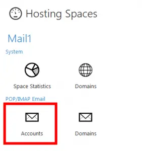 پس از ورود به کنترل پنل از قسمت POP/IMAP Email بر روی گزینه ی Accounts کلیک کنید.