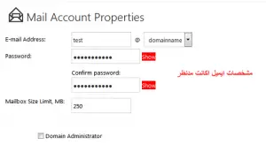 * با فعال نمودن گزینه ی Domain Administrator , ایمیل اکانت فوق دسترسی ادمین خواهد داشت و میتواند از کنترل پنل خود سایر ایمیل اکانت ها را نیز مدیریت نماید