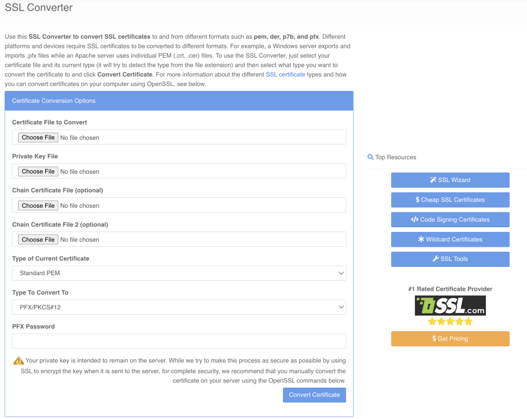 - باز کردن ابزار آنلاین تبدیل گواهی