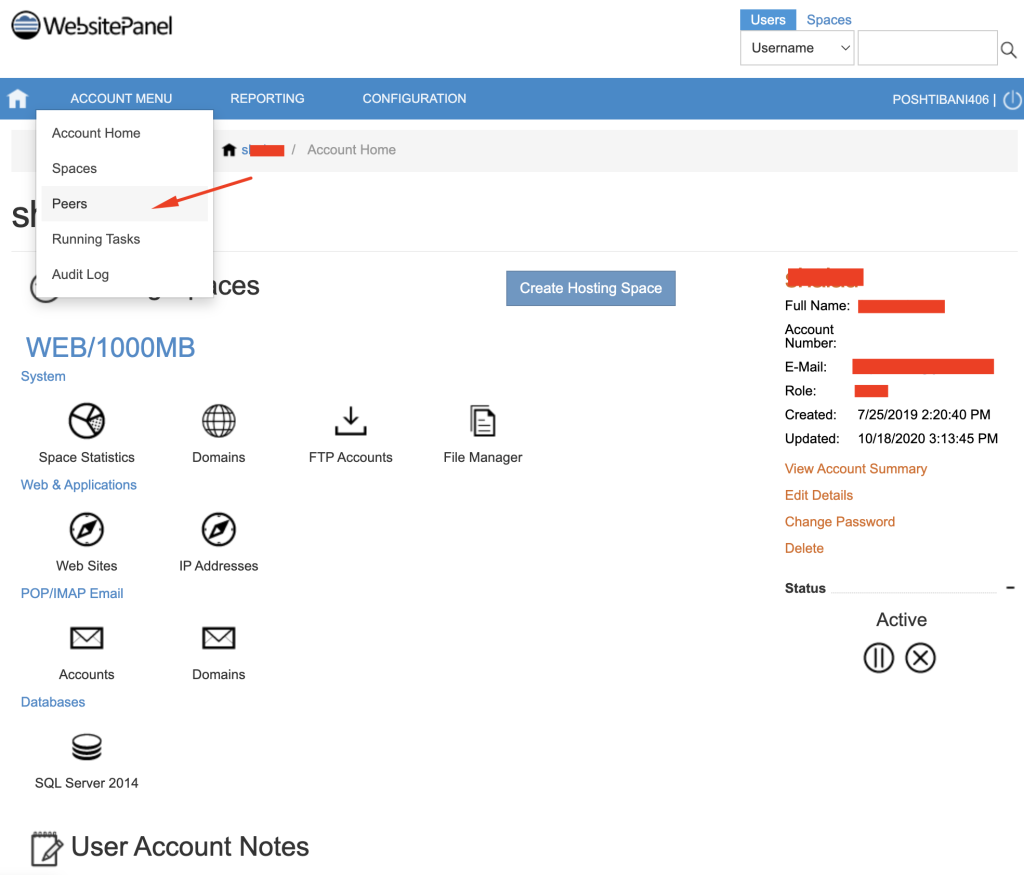 اکانت Peer اکانتی میباشد که میتوانید در کنترل پنل هاست ایجاد نمایید به جای اکانت اصلی، این اکانت را برای ورود به کنترل پنل هاست و انجام تغییرات استفاده نمایید.